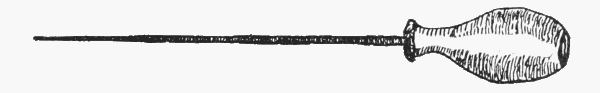 20.0-1468. Awl made of brownish bone. The shaft has nearly parallel sides and rounded corners but the base is nearly circular in section. Striations such as are made by a gritstone show on the surface. Found with another in a grave on an island in the Snake River five miles above its mouth (Fig. 10).