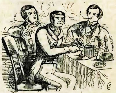 Leaving Mr. Pucker to express his thanks for this great kindness, and Mr. Bouncer to plunge him into the depths of trepidation by telling him terrible stories of the Examiner's fondness for rejecting the candidates for examination, Mr. Fosbrooke and our hero ascended to the rooms of the former, where they hastily cleared away cigar-boxes and pipes, turned certain French pictures with their faces to the wall, and covered over with an outspread Times a regiment of porter and spirit bottles which had just been smuggled in, and were drawn up rank-and-file on the sofa. Having made this preparation, and furnished the table with pens, ink, and scribble-paper, Mr. Bouncer and the victim were admitted.