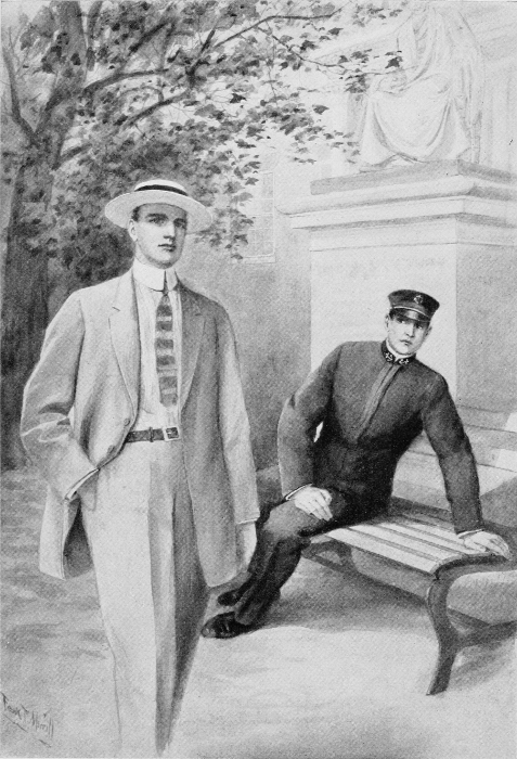 "Yes, I suppose so; still, such resemblances frequently exist. There is a rear admiral in our navy that had a son here and another at West Point at the same time. On one occasion when these two chaps were at home together, they exchanged uniforms and even the old gentleman himself was completely fooled. But I'm going to tell you about Frank. He has been at several schools and colleges and has repeatedly been dismissed. Some time ago he was expelled from Princeton and came down here. You see he's afraid of my father and leans somewhat on me. I was intensely disgusted. He was mixed up in a scrape in which some unpopular professor was left over night tied up in a room. Now as a matter of fact Frank for once had no part in this outrage. But he was suspected and accused—it's a long story; I won't go into that, Bob. He denied it, but was not believed, and was dismissed; if he were not guilty it was evident he knew who the guilty parties were, and he refused to divulge their names. So he came to Annapolis, and for this thing to occur just before our graduation was extremely unpleasant to me. I just couldn't talk about[346] him, but I used to go out to see him. A short time ago the whole truth came out, and Frank was exonerated, and then to my surprise he refused to return to Princeton. He had no good reason, but now I can see that he had become interested in Bligh. He was stubborn about not going back, and this surprised me. He never spoke of Bligh; probably the latter had asked him not to. Finally he demanded an apology from somebody in Princeton who had accused him of falsehood, and I went up to see what could be done. But the whole thing, including Frank's stubbornness, was so distasteful to me that I never spoke of it even to you."
