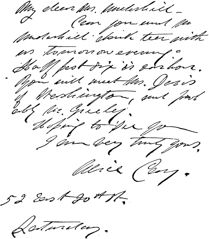 In the course of our united labors over it, extending[462] through a period exceeding four months, there have arisen a number of occasions on which we have differed over various points of expediency in regard to the arrangement and treatment, the insertion or suppression, of her voluminous materials or notes, and have discussed them freely, with some tenacity of opinion on both sides, while with reasonable candor and openness to conviction, certainly on her side. She has generally maintained that her Spirits had “impressed” and directed her so and so (the chief of them seeming to be Dr. Franklin and her grandfather), and a Spirit claiming to be Dr. Franklin has sometimes intervened in these discussions, either voluntarily or on being appealed to by us. I will describe one of these occasions, to afford the reader the opportunity of judging for himself of the genuineness of this Spirit intervention in these friendly discussions between two mortals still in the flesh, both of them actuated by an equal sincerity of zeal for the truth and for the good of humanity.