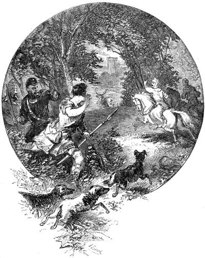The king and the Norman knights, excited with wine, strung their hunting-horns round their necks, called for their horses, sprang into their saddles, and with huntsmen in attendance, their hounds running at their feet, rode down the steep of Malwood, and entered the New Forest. According to the custom of the period, they then dispersed through the wood to pursue the game. Walter Tyrel, however, remained with the king, and all day their dogs hunted together.