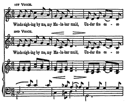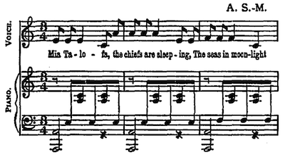 “What a beautiful voice you’ve got!” said he, as she dipped her paddle in perfect tempo to some wild melody that she sang in a minor key.