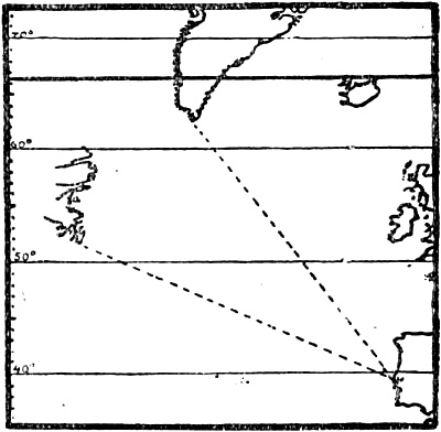 [298] It is by no means improbable that Cabot, who was an expert navigator, knew that great-circle sailing gave the shorter course. For instance, he might easily have seen this from a globe, and we are told that he himself made a globe to illustrate his voyage (cf. p. 304).
