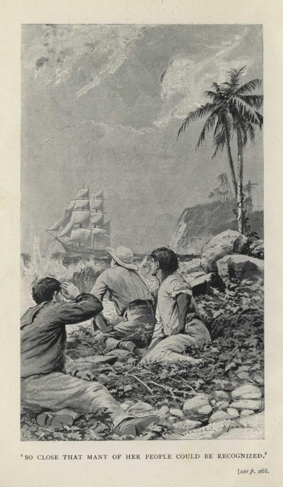 Half an hour later, as the Malolo, whose boats were towing astern, came in sight of Singavi Harbour and the Adventurer, Captain Herrendeen stepped up from below, with rather misty eyes, and spoke to Mr. Brooker and Henry Casalle, both of whom were at that moment talking over the exciting events of the past hour. That they should find Tom safe, and actually arrive at the island on the morning of the very day he was leaving it, was a strange and fortunate circumstance; but that their captain's wife should not only be alive and well, but have been rescued by the same ship which had afterwards picked up Tom and Maori Bill, was stranger still.