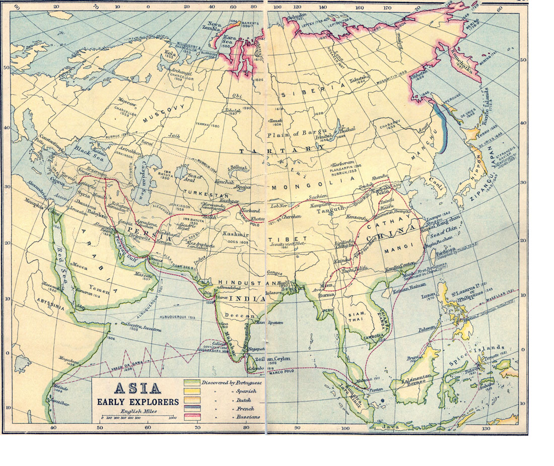 In this Asian Atlas, of small dimensions as it requires to be to fit its pocket, Irkutsk in the north, "far Mandalay," the details of the East and West Indies, the route of Marco Polo, coasts like the Carnatic, towns like Lucknow and Cawnpore, Lhasa, "the Forbidden City" of Tibet, and Matsuye, the old capital of Idzumo, which Lafcadio Hearn describes, all have their record. It remains to be said, that as in other volumes of the same set, Dr. Bartholomew of Edinburgh has acted as cartographer; and the editor and publishers wish to acknowledge his large practical aid in the design of the atlas. Also, they owe a word of thanks to Mr. William Foster of the India Office for his expert advice.