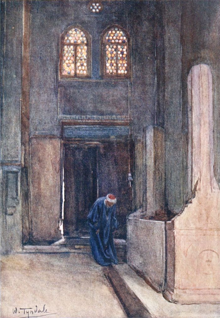 Cette mosquée était dans un déplorable état de ruine lorsque je la visitai pour la première fois, et, bien que d'une façon générale les artistes prisent peu les bâtiments remis à neuf, je fus enchanté quand j'appris que la Commission pour la préservation des monuments arabes en avait entrepris la restauration. Celle-ci fut dirigée par Herz Bey et exécutée d'une façon si admirable qu'il est maintenant possible d'apprécier le degré de perfection que l'art sarrasin avait atteint 48 pendant la première moitié du XIVe siècle. Une bonne partie des sculptures sur bois se trouvent dans des musées européens.