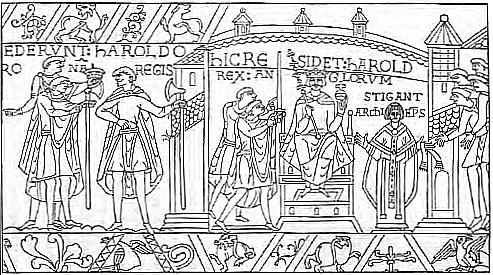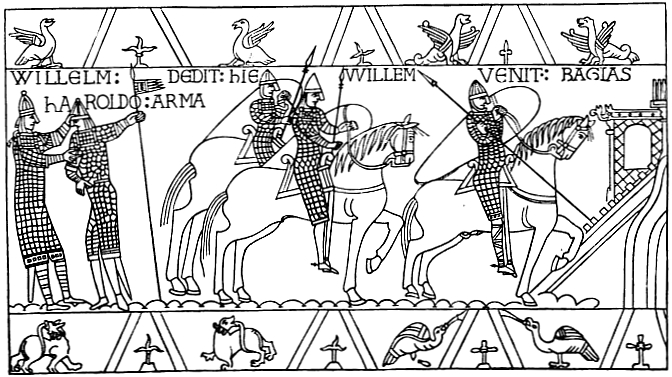 ILLUSTRATIONS—William knighting Harold at La Lande, from the Bayeux Tapestry, p. 224. Group from the same, p. 225. Signet ring of one of the Bigots, p. 235 note 39.