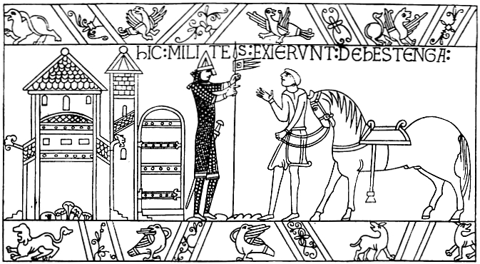 ILLUSTRATION—Fort at Hastings, with a messenger coming to William, from the Bayeux Tapestry, p. 148.