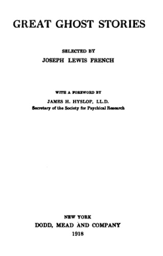 In the present age, which is saturated with psychic research, whatever the motive or outcome of that movement, ghost stories have been revived partly because you can invoke interest under the cloak of science and partly because of an interest in the unknown and the desire to please our fancies, and fiction, which is art and not science, can escape the duty of preaching. The psychologist, however, may detect a concealed realism in the most audacious feats of the imagination or an interest in the supernatural when the mind struggles to conceal or to ridicule it. Hence a collection of ghost stories, whatever their nature, may have their value for every class of readers. Some will want to invoke age and general human interest in behalf of certain prejudices, and others will want to quote them as illustrations of superstition. But all will like a good story well told and appealing to the imagination which always affords mankind more satisfaction than facts.