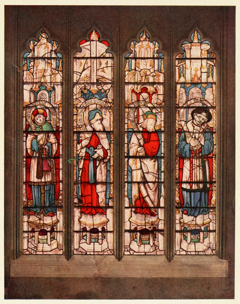 As to the question of the English or Flemish 260 authorship of the windows, it is true that Flemish details crop up here and there both in architecture and the costumes; but this is not surprising, for the style, new then to England, was largely based on Flemish art, and on the other hand the English characteristics are in excess of the Flemish.