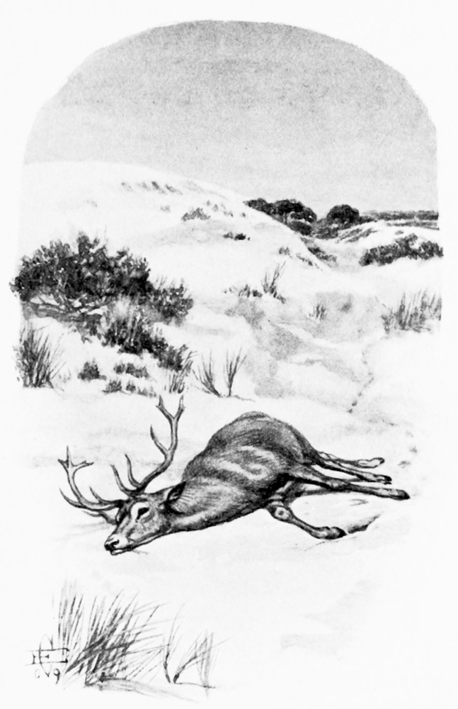 [14] The initials are those of our late friend Colonel Brymer of Ilsington, Dorset, formerly M.P. for that county, and who was a frequent visitor to Spain, where, alas! his death occurred while we write this chapter (May 1909). A unique exploit of the Colonel’s during his last shooting-trip may fitly be recorded. On February 5, 1909, at the Culata del Faginado, four big stags broke in a clump past his post on a pine-crowned ridge in the forest. Two he dropped right and left; then reloading one barrel, killed a third ere the survivors had vanished from sight. These three stags carried thirty-four points, the best head taping 30½ inches by 27 inches in width, and 4½ inches basal circumference.