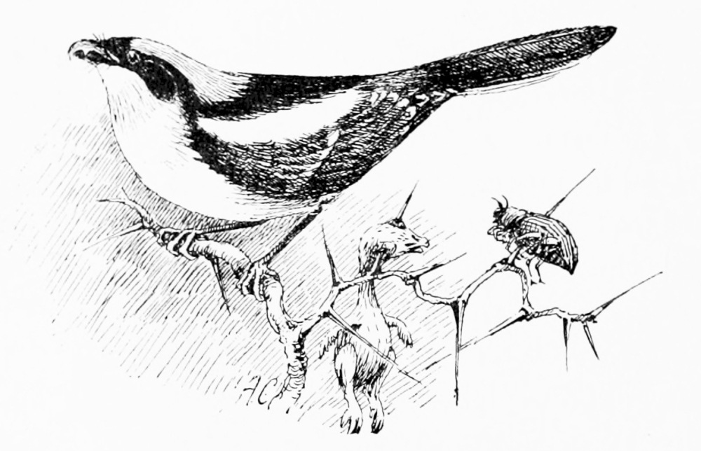 [12] This, the southernmost form of the green woodpecker, has much the most ringing voice. The closely allied northern form, G. canus, that one hears constantly in Norway, utters but a sharp monosyllabic note. A second curious fact may here be mentioned: that the great grey shrike, just named, Lanius meridionalis, is resident in Spain throughout the year, while the closely allied and almost identical L. excubitor breeds exclusively in the far north (chiefly within the Arctic) and only descends to England in winter. Besides the harsh note mentioned above, the southern shrike, in spring, utters a piping whistle not unlike a golden plover.