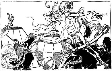 [287] The Wizard went to General Guph, who was trying to count his fingers, and told him to follow the Nome King, who was his master. Guph meekly obeyed, and so all the Nomes quitted the Land of Oz forever.