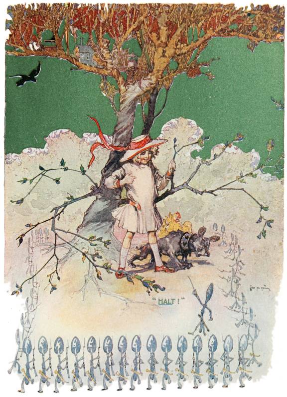 Ozma and Dorothy could not refrain from laughing to see their dreaded enemies become as harmless as babes. There was no danger now that Oz would be destroyed. The only question remaining to solve was how to get rid of this horde of intruders.