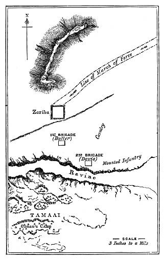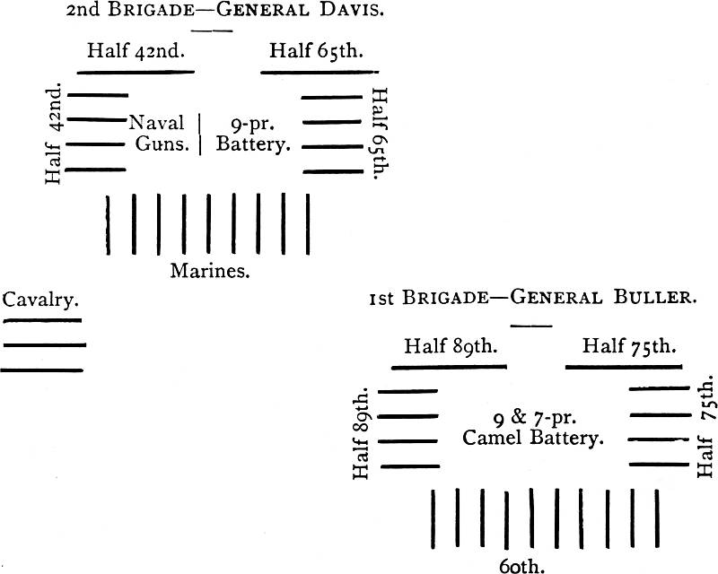 [171] The bush defence turned out a mistake, as the men had to stand up to fire over it, and thus exposed themselves to the enemy's bullets, whereas the Egyptian troops were able to lie down under the shelter of their trench.