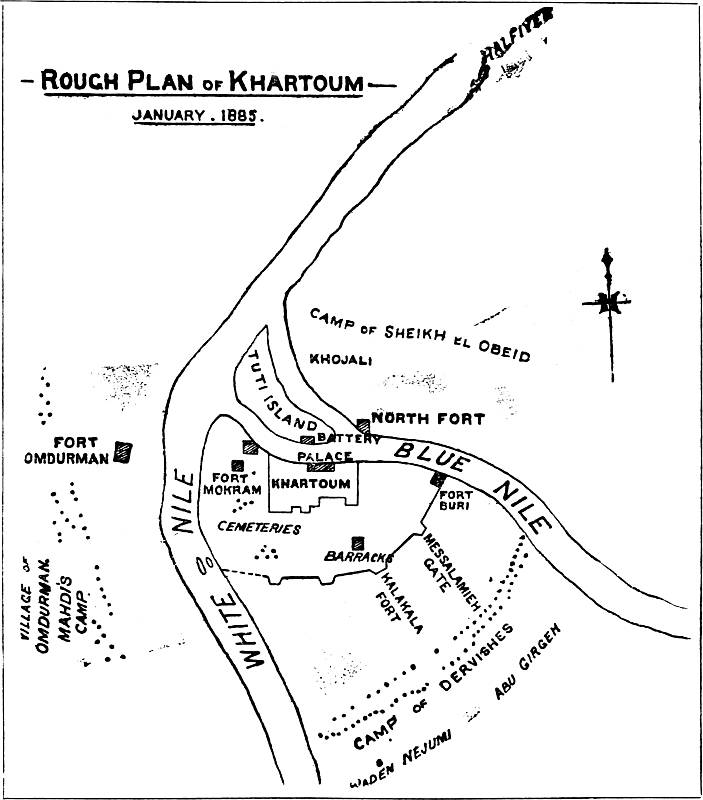 [153] It is said that Colonel Rundle, Chief of the Staff of the Egyptian army, was aroused to hear the news by stones thrown at his window in the middle of the night, and that no one could be found bold enough to awake and inform the Sirdar, who remained in ignorance until the morning.