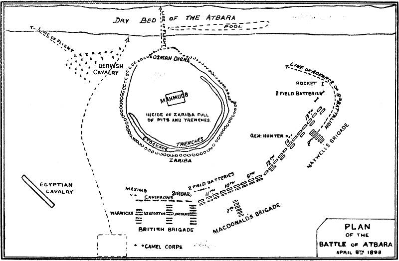 [157] Later on Ed Damer was disestablished, and Fort Atbara, at the northern angle of the two rivers, was substituted for it.