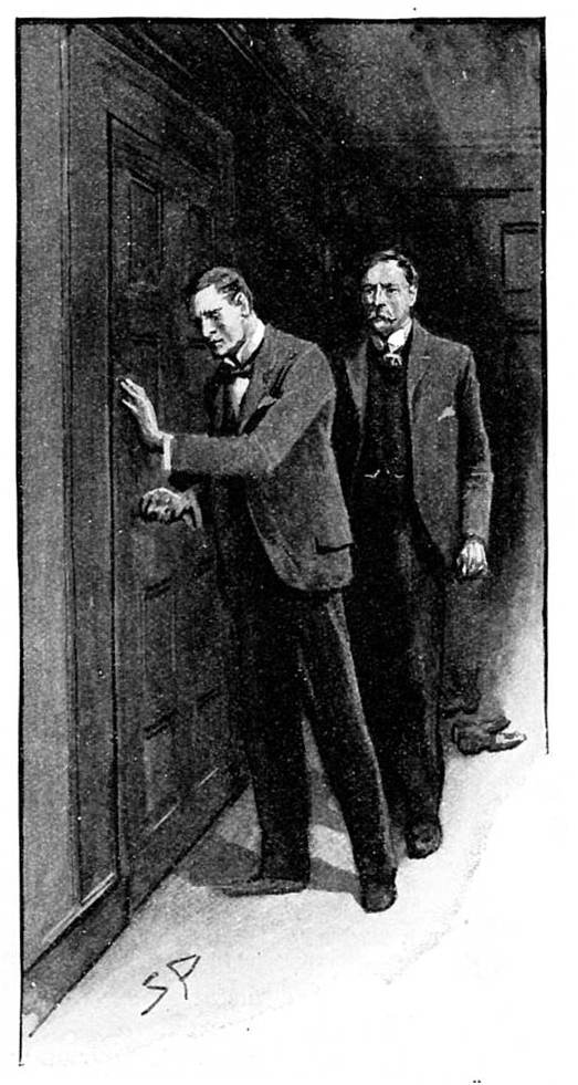 I was not long in following his directions, but I found when I arrived that he had already returned with a police inspector, and another elderly gentleman, who proved to be Mr. Purvis, one of the partners of Morson and Company, the well-known diamond merchants. As an expert in stones he was always prepared to advise the police. They were grouped round the case in which the breast-plate of the Jewish priest had been exposed. The plate had been taken out and laid upon the glass top of the case, and the three heads were bent over it.