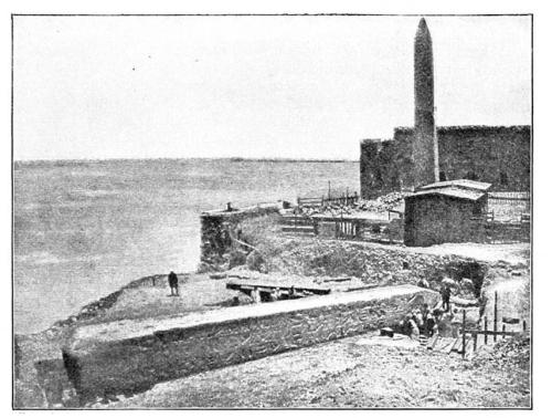 This photo. shows the muzzle of a 12-inch gun. The curious markings are always to be observed, to a greater or less extent, upon firing any gun; they are probably caused by the escape of the gases past the "driving-band" at the moment it leaves the muzzle. The "driving-band" is the brass ring on the base of the projectile, which cuts its way through the rifling of the gun, giving the shot the necessary rotary movement. The regularity of each spurt of gas is very singular. We are indebted for the snap-shot to an officer in H. M. Navy.