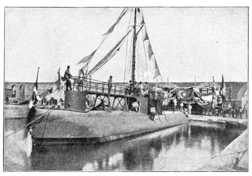 This charming model of Conway Castle and Bridge is made entirely from tobacco and cigarettes, and is the work of Mr. John H. Harrison, of 247, West Derby Road, Liverpool. Mr. Harrison writes as follows: "The length of the model, which I am exhibiting in my window, is 8-1/2ft.; depth, 2-1/2ft.; height, from surface of water to top of towers, 3ft. The real genuine article is used for the water, in which gold-fish disport themselves, although for the purposes of the photo, we substituted mirrors. This model has been a great source of attraction."