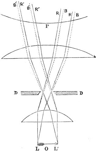 The nature of the corrections which take place in the doublet is explained in the annexed diagram (Fig. 5), where L O L´ is the object, P a portion of the pupil, and D D the stop, or limiting aperture.