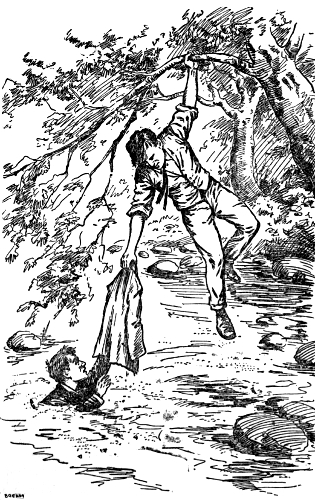 During their outing, Jerry, being lost in the woods during a storm, succeeded in saving the life of Andy, who after that refused to continue his mean tactics of plaguing the chums, so that the leadership of the opposition fell upon another fellow, the same Pet Peters who was now jeering Bluff.