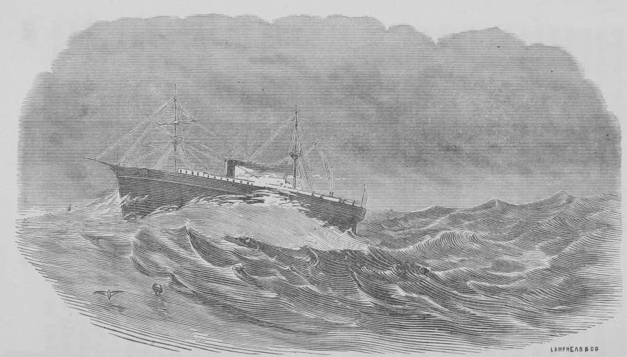 The ship didn't appear to care a cent about the muss it was raising, but kept on, like a wild mustang, when under the saddle for the first time; every few minutes contriving to duck down so low that the wind would dash the water over us, which did not greatly enhance our comfort. I will not say that it made us more miserable, for that would be impossible; a sea-sick man can defy all creation to add to his misery.