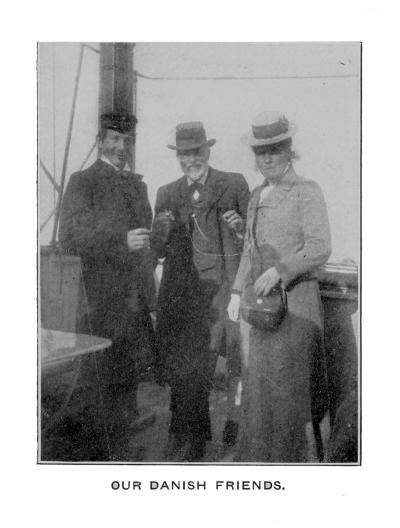 Our fellow passengers were mostly Danes. This is their favorite route for coming home. They are a quiet, rather pensive people. The men, much of the time, were smoking, and drinking beer and a white brandy. The women were often sitting in the smoking room with them, enjoying, I presume, the perfume of tobacco, as every right-minded woman should, and it may be, also finding solace in the scent of the strong brown beer, which they are not themselves indisposed to quaff.