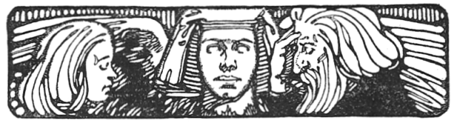 Like the Pyramids, the Sphinx has stood wrapped in mysterious silence these thousand years. The form of the Sphinx was very common in ancient Egypt, it being a symbolic representation of the king. The body of the lion symbolized his strength, or power; the human face was a portrait of the monarch. Shifting sands have accumulated to the breast of the body—said to be 140 feet long. Of the huge proportions one may judge from the fact that should a man stand upon the ear of the Sphinx his hand could not reach the top of the head. A little chapel of comparatively recent date has been placed between the paws of the lion.