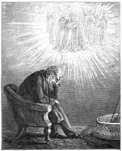 All these angels, who were waiting, turned their beaming eyes upon the people who were carried up into the star; and some came out from the long rows in which they stood, and fell upon the people’s necks, and kissed them tenderly, and went away with them down avenues of light, and were so happy in their company, that, lying in his bed, he wept for joy.