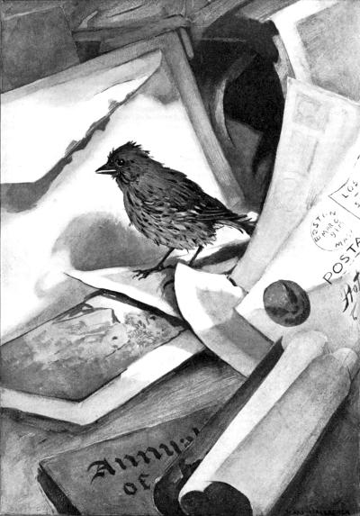 One day I got very cross with Fessor for writing so much, and I determined to hide from him. By this time I knew the “den” pretty well, and I had found, “way back” in the big box in the corner, where the piles of big envelopes and loose papers were, the cutest hiding-place in the world. It was a kind of tiny house formed by the piles of papers and I could just crawl into it through a narrow place, and then I had room to move around easily, and I knew no one could find me. So I slipped off from the desk on this particular day and dodged into the box and hid myself. Fessor didn’t see where I went, and pretty soon he began to wonder where I was, for he looked all around and went and peeked behind the desk and on the book stand and other places where I often “played hide,” but of course he couldn’t find me. I stood as still all the time as a bird knows how, and never let on that I knew he was seeking for me; and so, after a while, he gave up the search.