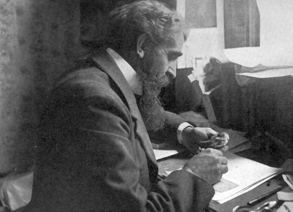 Fessor used to spend an awful lot of time at his desk. The time he wasted there was more than I could ever tell, for he would be hours at a time doing nothing but moving that pen across the paper, making those nasty little dark scratches that in time I learned were called writing. When he came into his den and sat down at the desk I would come to his feet and call, and he would lower his hand for me to jump into, and then he would lift me up on the desk. I generally hunted first for a few pinion nuts, after which I wanted Fessor to play with me. Sometimes he was so busy with his “paper scratching” that he wouldn’t reply when I chirped to him. Then I got right on his paper, and hopped along between the hand that held his blotter and the hand with which he wrote, and there, right under his very nose, and generally on the spot where he wanted to write, would stand and ask him why he didn’t play with me. Sometimes he gently pushed me aside or lifted me out of his way, but generally he smiled at me—and I did love to see him smile—and would let me perch on his fingers or go through some antic or other, such as carrying me around the room on the top of his head, or holding me in his hand and swinging me to and fro as if I were in a nest on a bough swinging hard in a storm. Those were great times.
