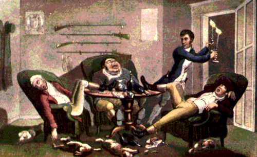 | —"It may be so," the Knight replied, And then he shook his head and sigh'd: "I'm not a stranger to the game, When I was young, I did the same." —Beside Sir David, Madam sat: To charm his flurry with her chat Her tongue pour'd forth its ready store And talk'd the busy evening o'er; Their biscuits took and, nothing loth, Moisten'd them well with cordial broth; Thus, till bed call'd, enjoy'd their quaffing, He with hoarse chuckle—she with laughing. |