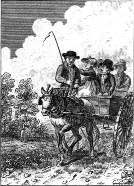 "What," said Caroline, who was a year or two older than her brother, and who was already seated in the cart, "does Mr. Beaufort talk of coming to us? O! pray do, Sir; you cannot think what a pleasant place it is." "I won't promise," answered the good-natured man, pleased at their eagerness, "but perhaps I may;" and then kindly assisting the servants to get up, he had the pleasure of setting off the whole party, rewarded by their smiles and thanks. "Pray come to us when you take your ride," was loudly re[Pg 5]peated, both by Caroline and Henry, till they were out of his sight, and with a look of kindness, he gave them, what they considered, a nod of assent.