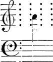 The following passage will show the necessity for this, and also the need of an intermediate clef, between the bass and treble.