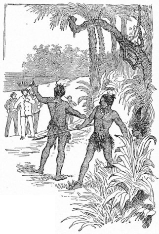 As the day was the anniversary of the restoration of King Charles II., I named the island Restoration Island. Our short stay there, with the supplies which it afforded us, made a visible alteration for the better in our appearance. Next day, Saturday the 30th, at four o’clock, we were preparing to embark, when about twenty of the natives appeared, running and hallooing to us, on the opposite shore. They were each armed with a spear or lance, and a short weapon which they carried in their left hand. They made signs for us to come to them, but I thought it prudent to make the best of our way. They were naked, and apparently black, and their hair or wool bushy and short.