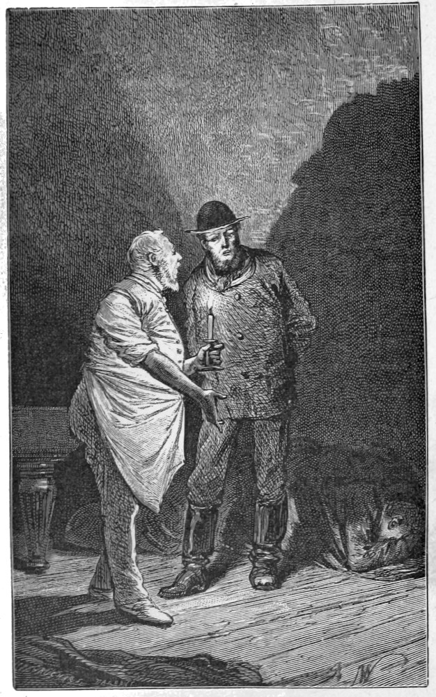 D’abord il donna cours à son indignation, en enfilant à la suite les uns des autres une série de jurons effroyables; il se mit ensuite à cracher violemment autour de lui, reprit haleine, cassa un verre pour calmer son émotion, et finalement, voyant ma confusion et se radoucissant, me dit: