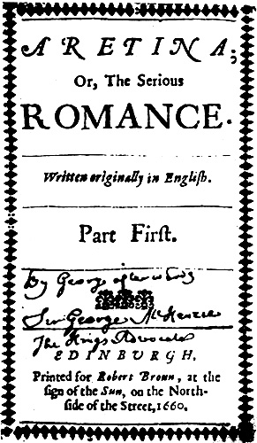 The stylistic aspect of the Romancer’s problem is well illustrated by the Apologie prefaced to his Aretina (1660) by Sir George Mackenzie. This is the critical exercise of a young man in search of a style. Sidney, Scudéry, Barkley and Broghill are his saints and patrons if only because they had shown a distaste for “things impracticable ... above the reach of man’s power” such as filled the pages of Amadis de Gaulle. But serious Romance (and Aretina is that) can “strain the christal streams of vertue from the puddle of interest”; it allures “lazy Ladies and luxurious Gallants ... to spend in their Chambers some hours, which else, the one would consecrate to the bed and the other to the Bordell.” The one real contribution he makes, however, is in his insistence on avoiding “the style which because of its soaring pitch was inimitable.” In his own writing there is much that savours of copy-book conceits but a style “flourished with similies,” such as “Barrasters” use, is by no means to be condemned. Mackenzie seems to be in two minds, pulled this way and that in response to two guiding notions and allegiances. In his Idea Eloquentiae Forensis Hodierna (1681) he maintains that “Eloquence is not only allowable, but necessary ... where Passions are to be excited.” To “the profluvium Asiaticum” of the Codex and the (so-called) novels of the lawyers, he opposes the narrowness of “the short or Laconick Way” which was the only excellence of judges. In his condemnation of bombastic periphrasis and the “carminated” hyperbole of Browne and Charlton, he would have included some, at least, of the pretty effects so carefully studied by “a ridiculous caball of Ladies at Paris.” Nevertheless the one style he recommends is that “where the cadence[Pg iv] is sweet, and the epithets well adapted ... and this is that style which is used at Court, and is paterned to us by eloquent Scuderie.” He never attained to that kind of writing himself in Aretina but the new style, for all that, was presently to be succinctly catalogued in all its essentials by the members of the Royal Society and was to provide the staple of the English novel when it ventured outside “the circumference of wit” and attained popularity in Defoe and Fielding.