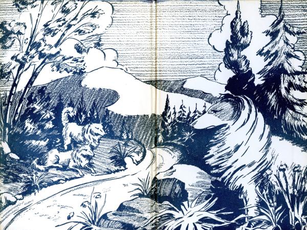 At once, on the invitation, King forgot his accruing years and his dignity. With a bound he was at Nina’s side. Together the two raced madly across the yard and across the yellow road and on up into the hills.