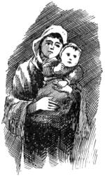 As the conductor held up these articles in his stiff, red fingers, turning the doll about so as to show her flaxen braid to the best advantage, and inducing the arms to take the positions alluded to, the Shadow crept away, and had well-nigh disappeared. But it returned again, thicker than ever, when he said, with a little choke in his voice, “I did mean to get ’em a little tree, with candles on it, and a picture-book or two; but our pay ain’t overmuch, and we had sickness, and—and”—he was very busy doing up the bundle, and very clumsy he must have been, too, for it was a long time before the wide-looped, single bow-knot was tied, and the parcel carefully put away again.