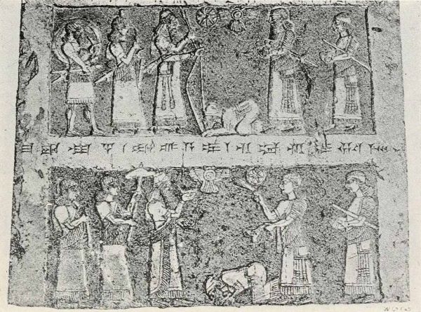 [560] Perhaps one of the antediluvian Babylonian kings. (See Part II, Chapter IV.) The Sumerian form of his name was Laluralim and in Rawlinson’s Cuneiform Inscriptions of Western Asia, Vol. V, p. 44, 17b, is glossed as Zugagib or “scorpion.” Zugagib is one of the early kings of Babylonia, who is said to have ruled 840 years.