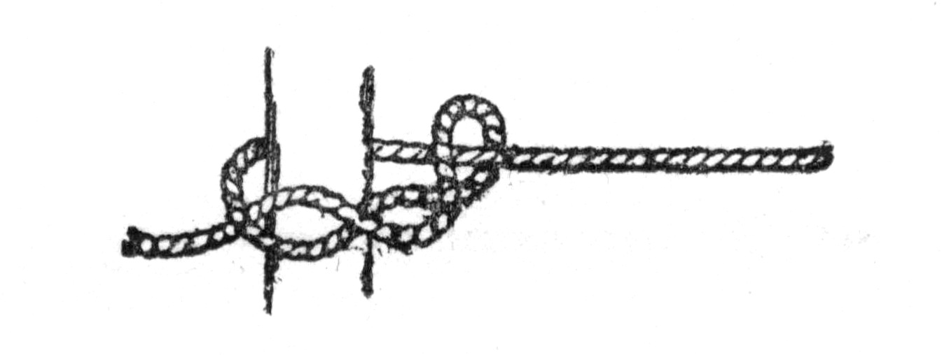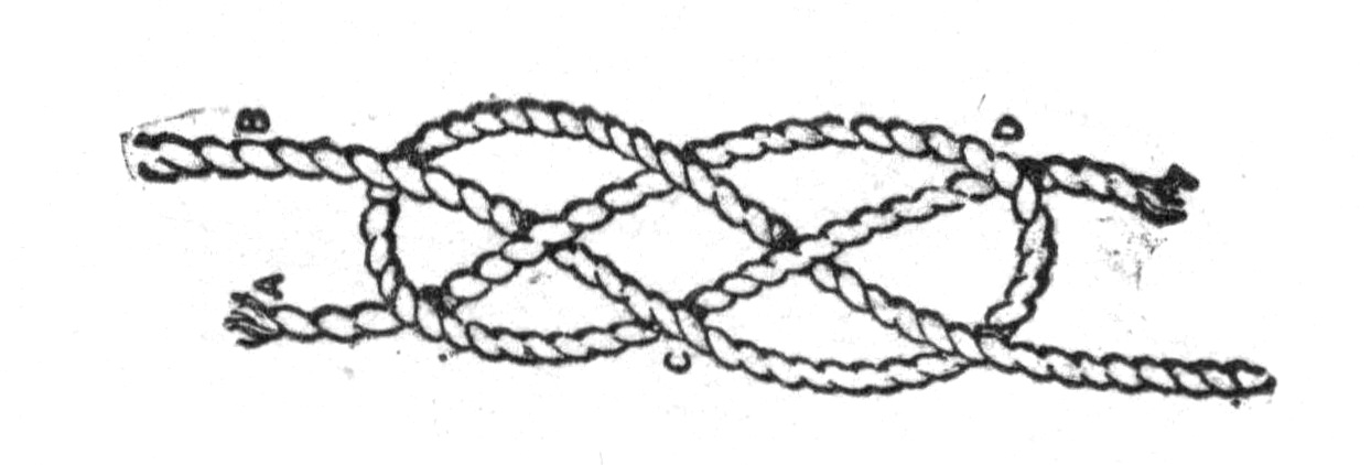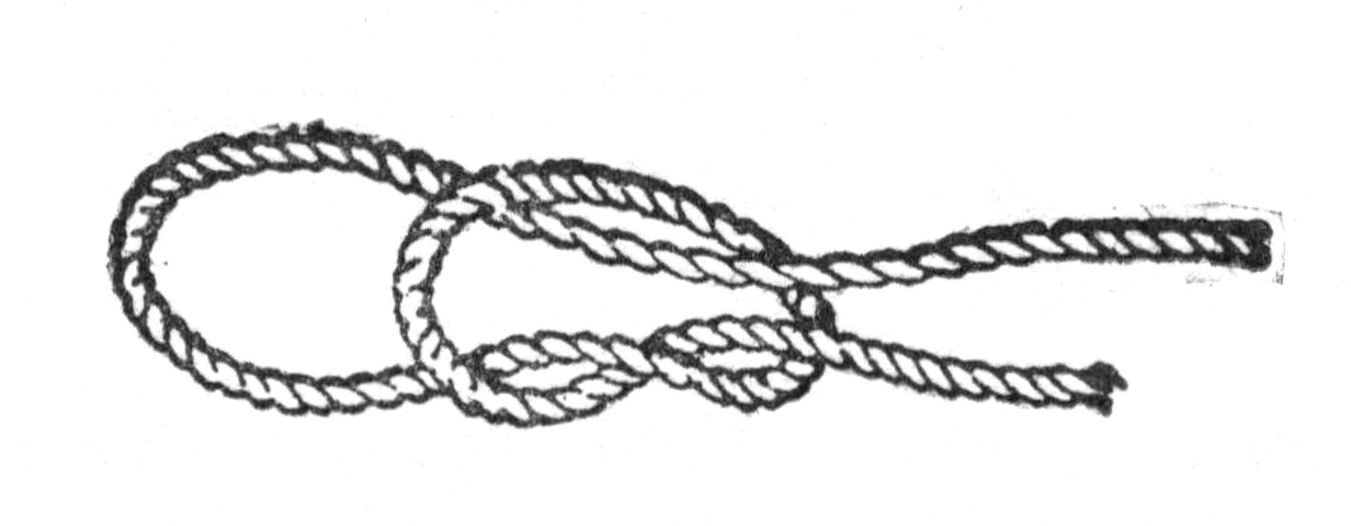 “The Scout law, sign, salute and meaning of the badge (Chester and I can teach you that in a few minutes); the composition and history of our country’s flag and the usual forms of respect due it. (This is learned as easily as the other); and you must be able to tie four of the following knots: square or reef, sheet-bend, bowline, fisherman’s, sheepshank, halter, clove hitch, timber hitch or two half-hitches.