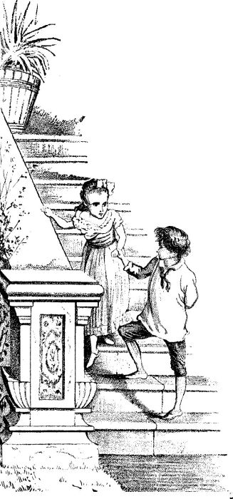 “Tired with running and laughing, Edmée called to Pierre to help her down the steep stone steps at one end of the terrace, and the two children settled themselves comfortably under the shade of a wide-spreading beech tree.