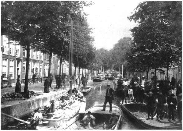 Boyman’s Museum contains a most valuable collection of Dutch art, and the churches, parks, and public ways are attractive and interesting. Down at the large docks you will find busy scenes; at the Wilhelmina Kade especially, where the great passenger steamers lie. You will meet that name Kade wherever you go in the towns of Holland. It means quay, and the different thoroughfares distinguished by the name are either quays or else have been quays in times past, and in the course of the city’s growth have become streets with waterways in them.