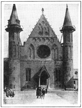 The full Dutch name of this city of royalty is ’s Graven Hage (’s grah´-fen hah´-ge), which means “the count’s inclosure.” The name was given to it originally when it was a richly wooded plain and a hunting resort of the counts of Holland. It is now the residence of the queen of Holland and the seat of government, where most of the important national transactions of the last three hundred years have taken place. There is no great amount of business at The Hague. It is a place of important political affairs and of social life and enjoyment. The life there is distinguished for its gaiety, and the society for its distinction. Great interest naturally centers in “The House in the Wood,” a most picturesque château erected in 1645 for Princess Amalia, consort of Prince Frederick Henry, son of Henry the Silent. This is the favorite home of royalty. The most interesting apartment in the palace is the Orange Room, which was prepared by the princess as a memorial to her husband, and has been the scene of many important diplomatic and social events. The first International Peace Conference, at which twenty-six powers were represented, met in this room in the summer of 1899. The House in the Wood is beautifully furnished and decorated, and, more than the usual royal residence, it realizes the meaning of the word “home.”
