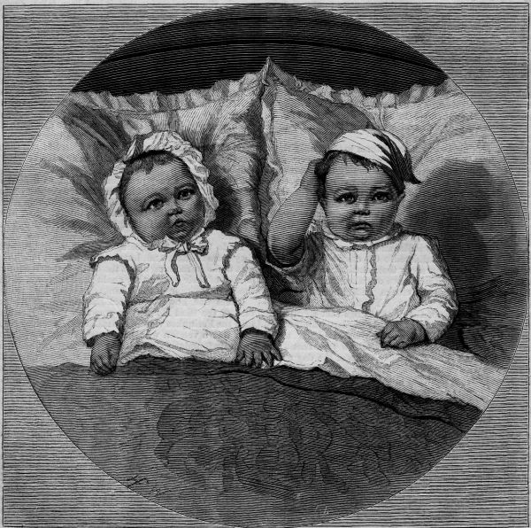 Dora French is the oldest girl, and has auburn hair like the Empress Eugenie. Her hair comes off sometimes, but I use a sticking stuff for tonic, and fasten it on just as the ladies do their puffs. Dora is very graceful, and turns her head beautifully. She wears blue, to suit her hair.