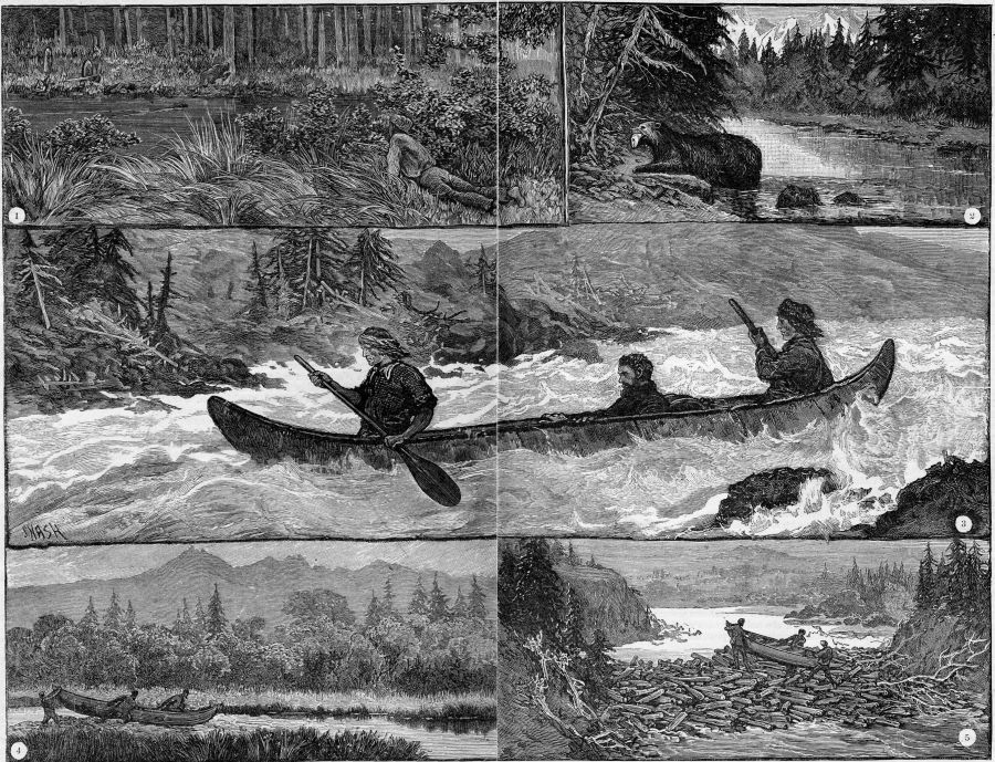 MY DEAR CHARLEY,—I've had at last the experience of a real Indian canoe voyage, of which we used to dream when we read The Young Voyageurs on the sly behind our desk at school. To begin at the beginning (which modern stories seldom do), imagine me starting from Bear Creek to descend the river in a canoe with two "real live Indians." If you want to know what Indians are like, just fancy two overfried sausages wrapped in dirty brown paper, and you'll have a perfect picture of my "noble red men," whose names sounded to me exactly like "Cock-a-doodle-doo" and "Very-like-a-whale." But you soon get used to such things in a country where names like Nomjamsquilligook and Kashagawigamog are quite every-day matters.