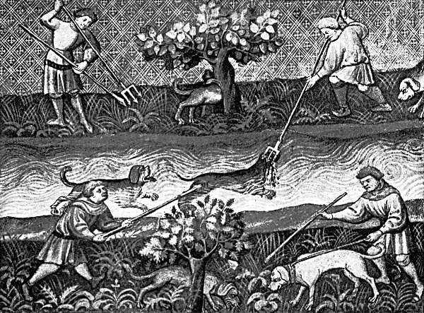 No work dealing with the chase of wild animals in mediæval times would be complete were it to omit all reference to snares, traps, gins, pitfalls, and other devices to take game other than by hunting. The "Master of Game" mentions the subject but briefly, saying, "Truly I trow no good hunter would slay them so for no good," but "Gaston Phœbus" contains seventeen short chapters in which the author as well as the miniaturist describe the various contrivances then in use, although the same disdain of these unsportsmanlike methods is expressed by G. de F. that marks the Duke of York's pages. In the first edition of the present work will be found descriptions of the principal snares used in the Middle Ages.