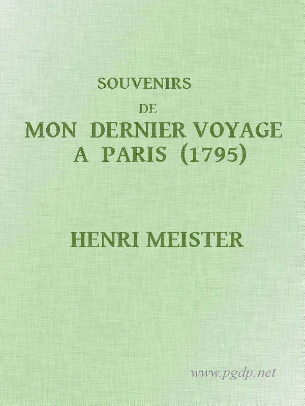 Mme de Staël, passionnée de Paris, y était arrivée au 17 printemps de 1795 [16]. Sans y voir, comme elle, le paradis, Meister aimait aussi cette ville, où il avait passé tant d'heureuses années; le soin de ses affaires l'y appelait d'ailleurs.