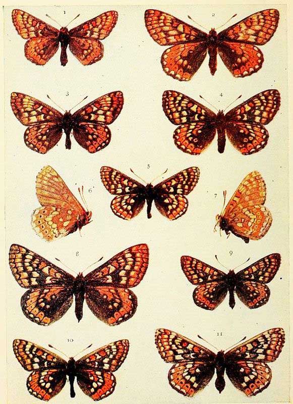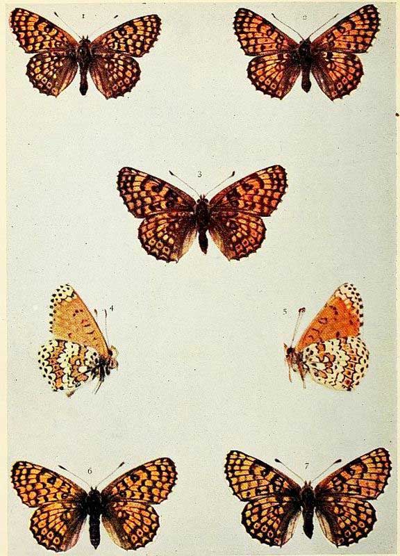 Duke of Burgundy Fritillary. 1, 2, 4 male; 3, 5 female.